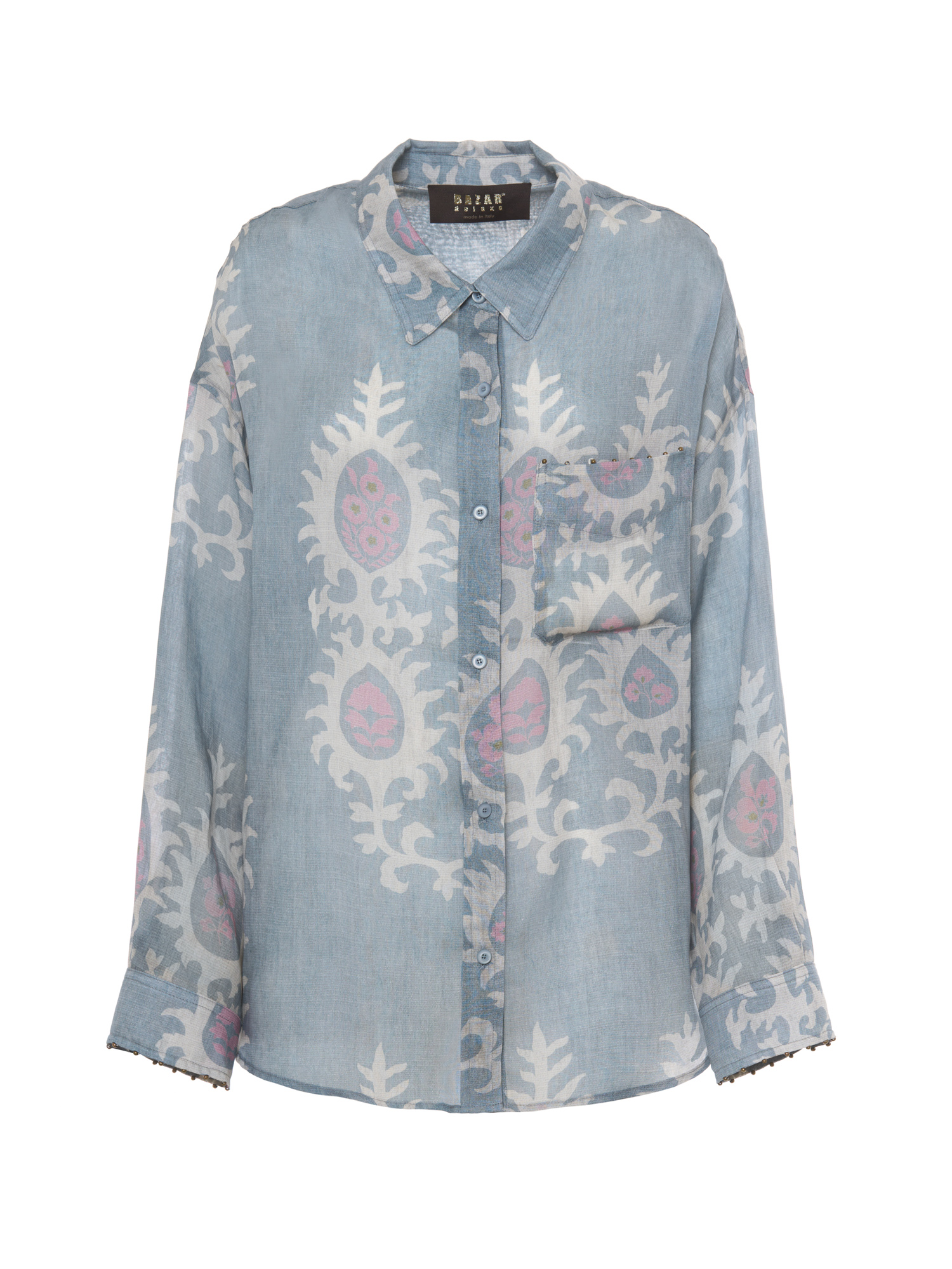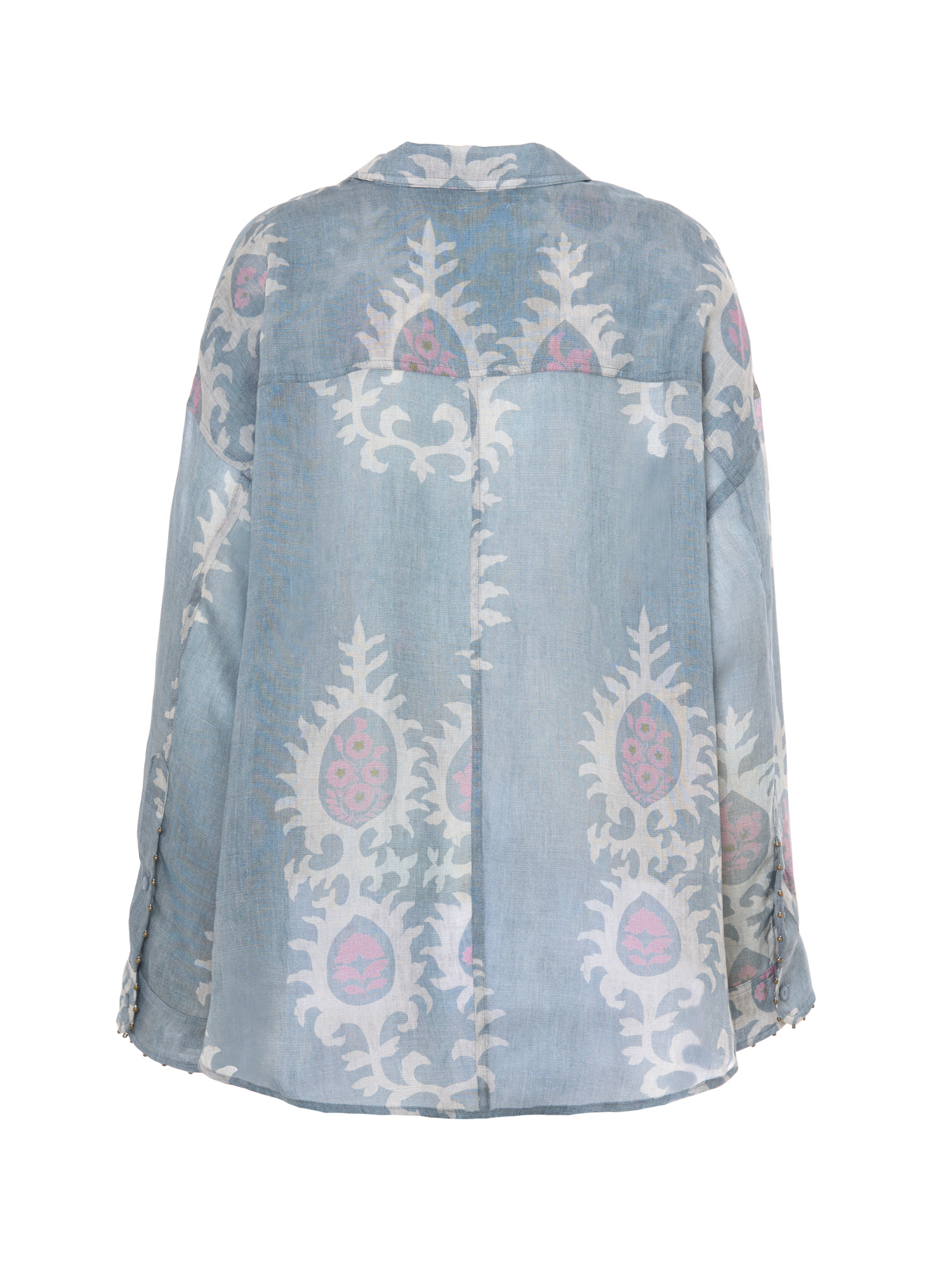 Camicia over stampa etnica colore azzurro.