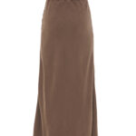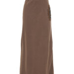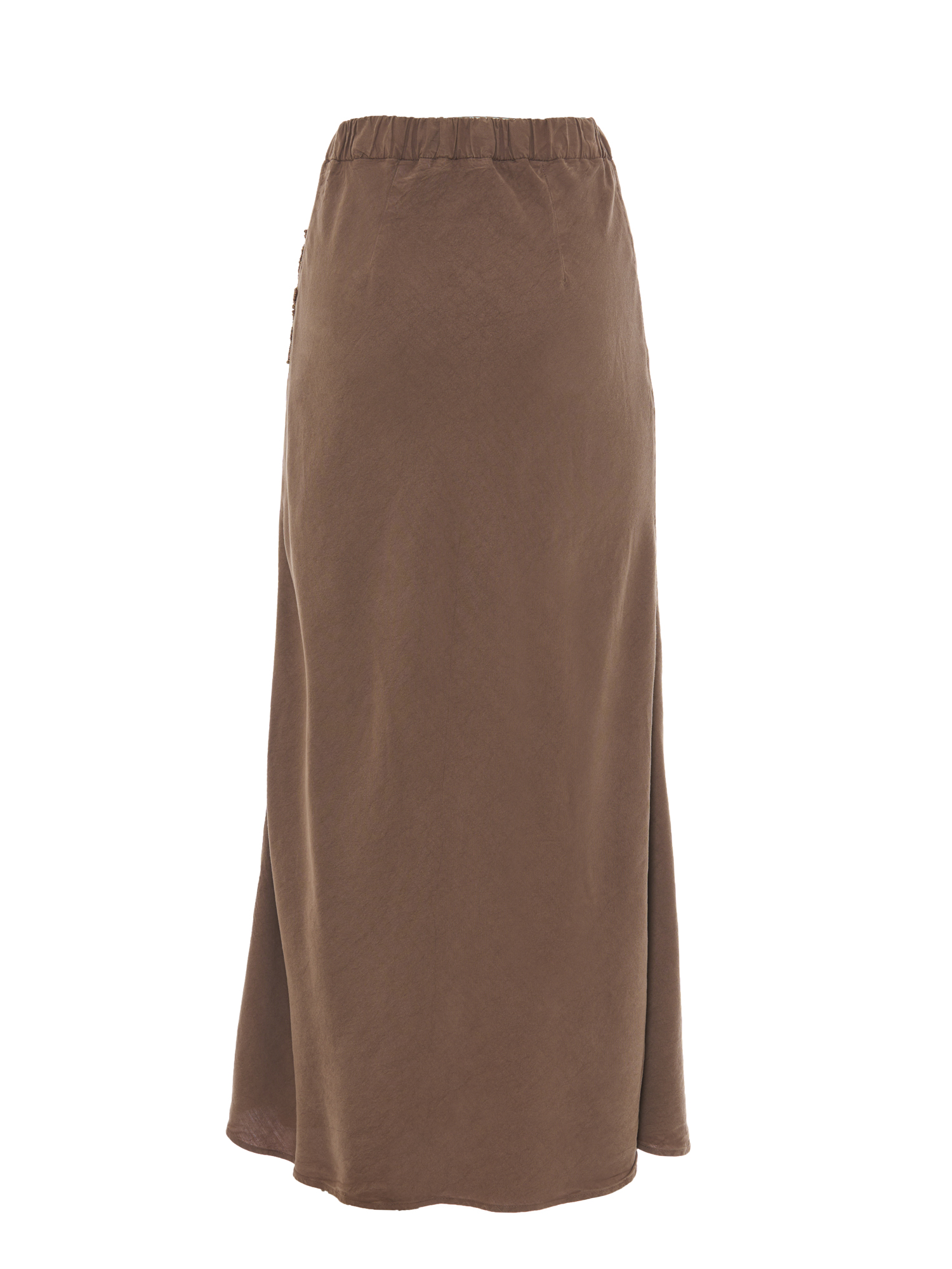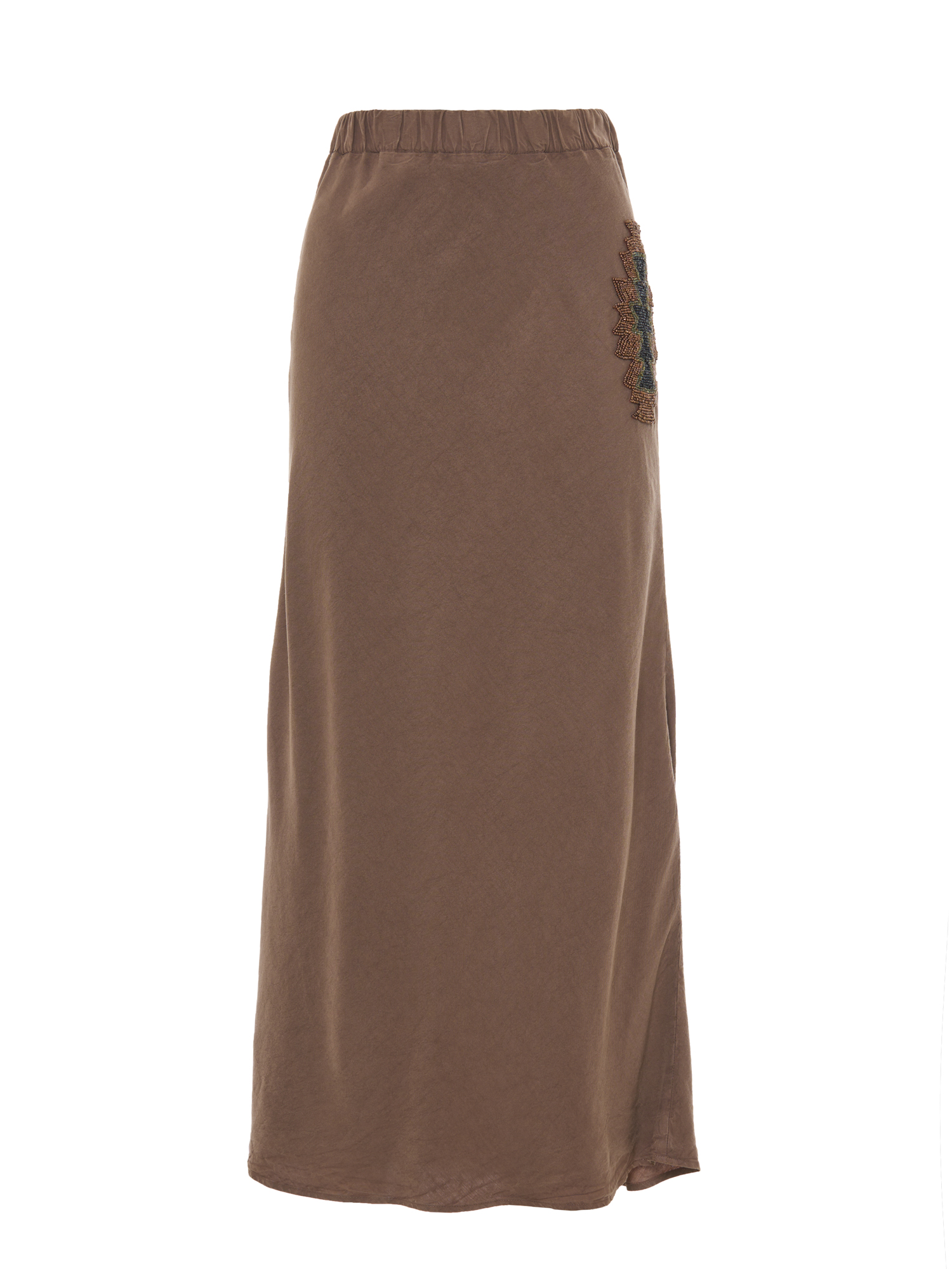 Gonna diritta in tessuto fluido tinto capo con ricamo.