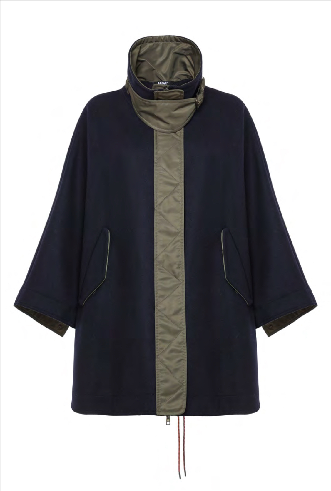 Mantella in lana color blu navy con dettagli military nylon.