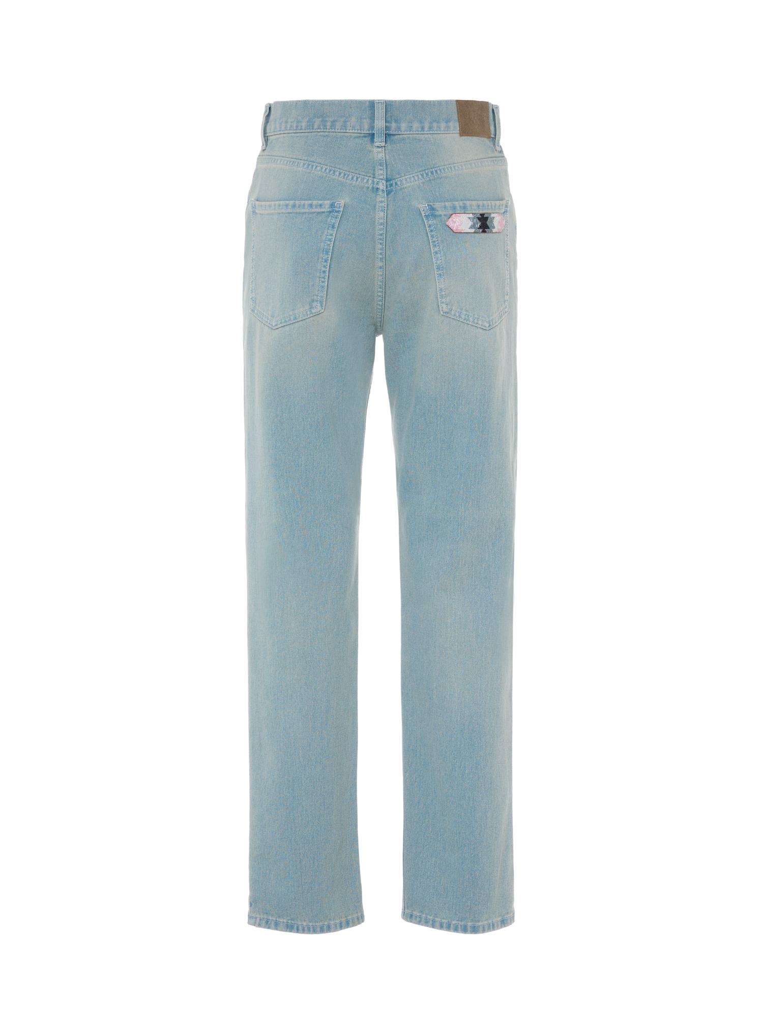 Jeans cinque tasche modello dritto con dettagli di ricamo.