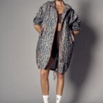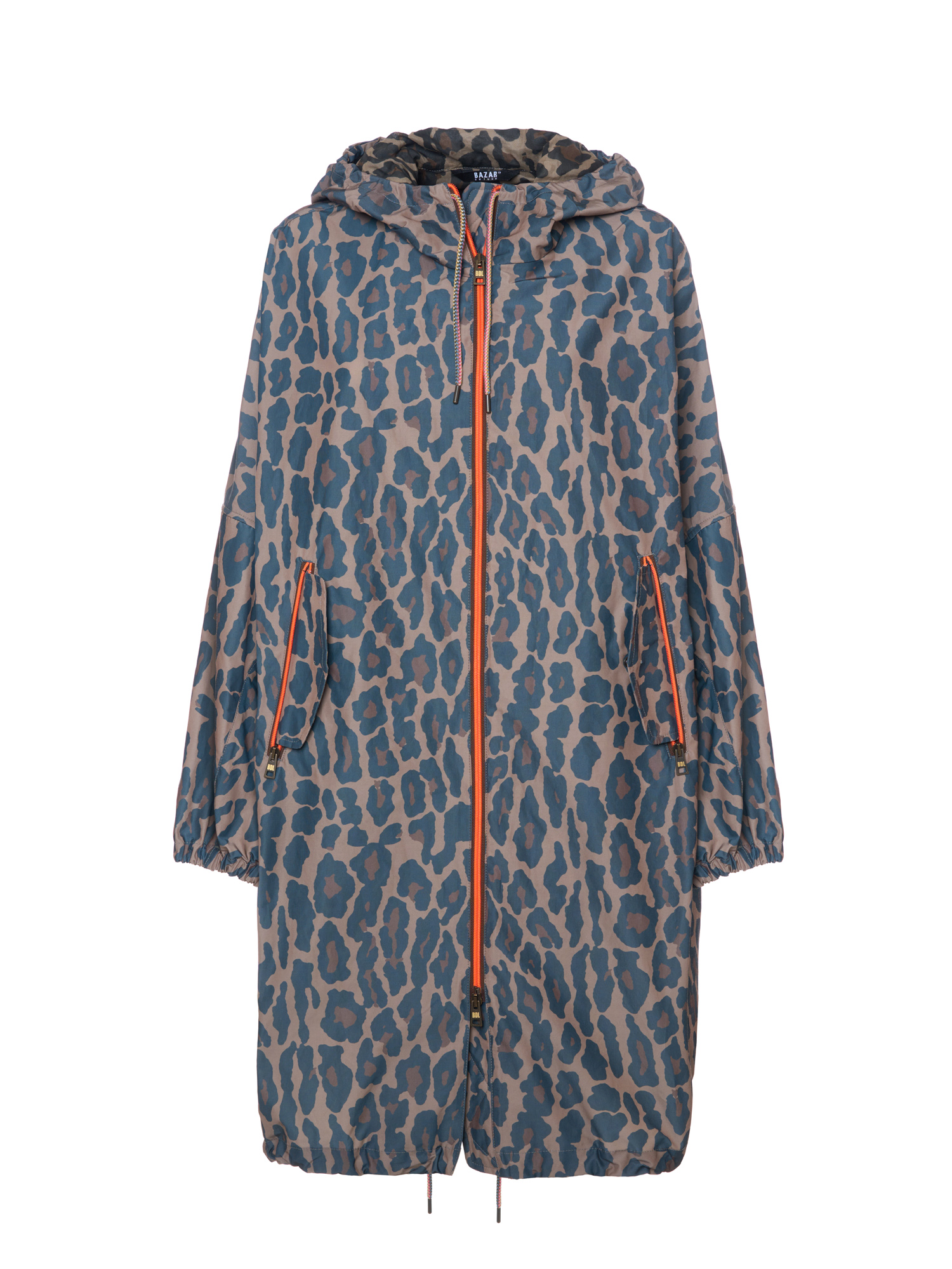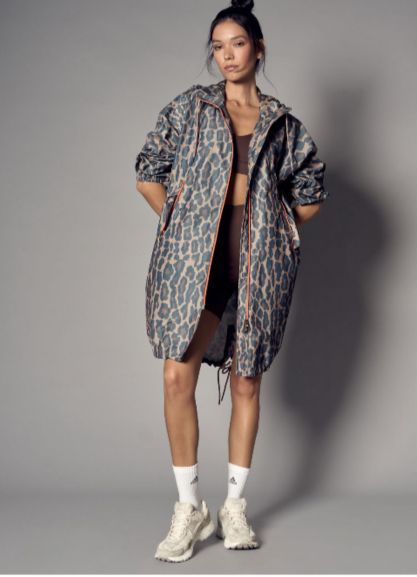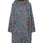 Parka in nylon stampa leo con cerniere in contrasto.