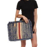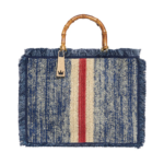 Borsa shopper in rafia con manici in bamboo.