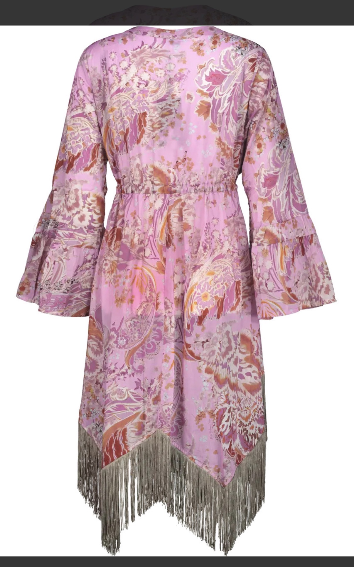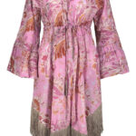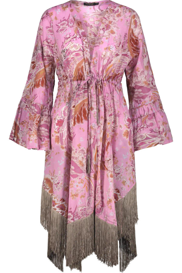 Caftano a vestaglia stampa damascata con frange.