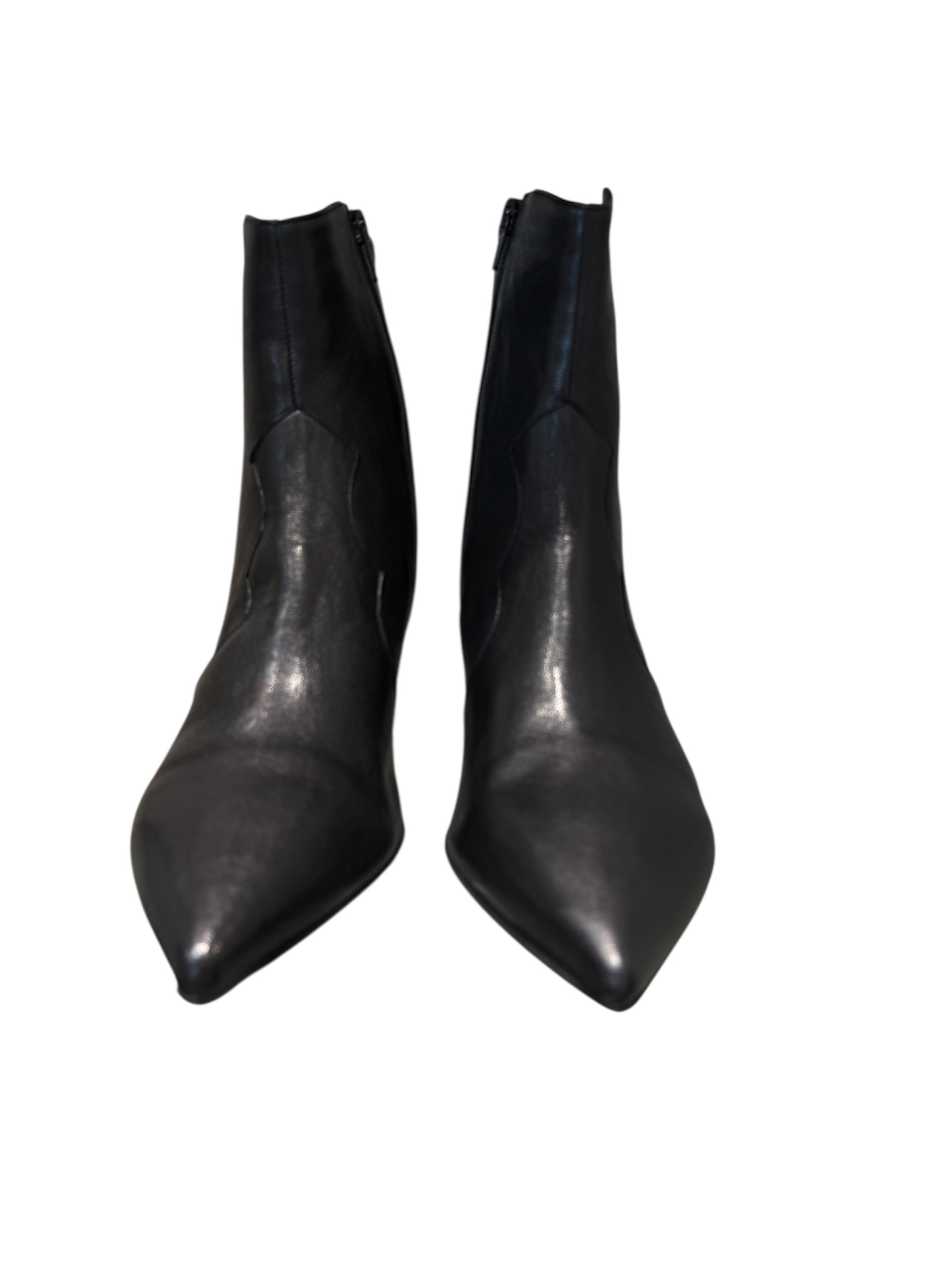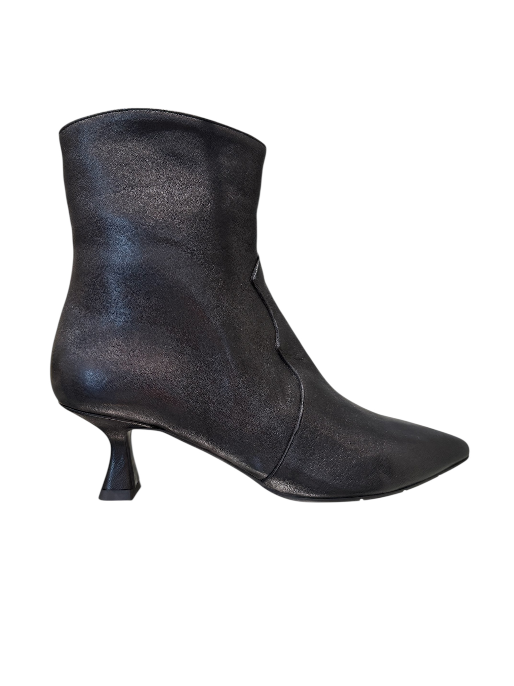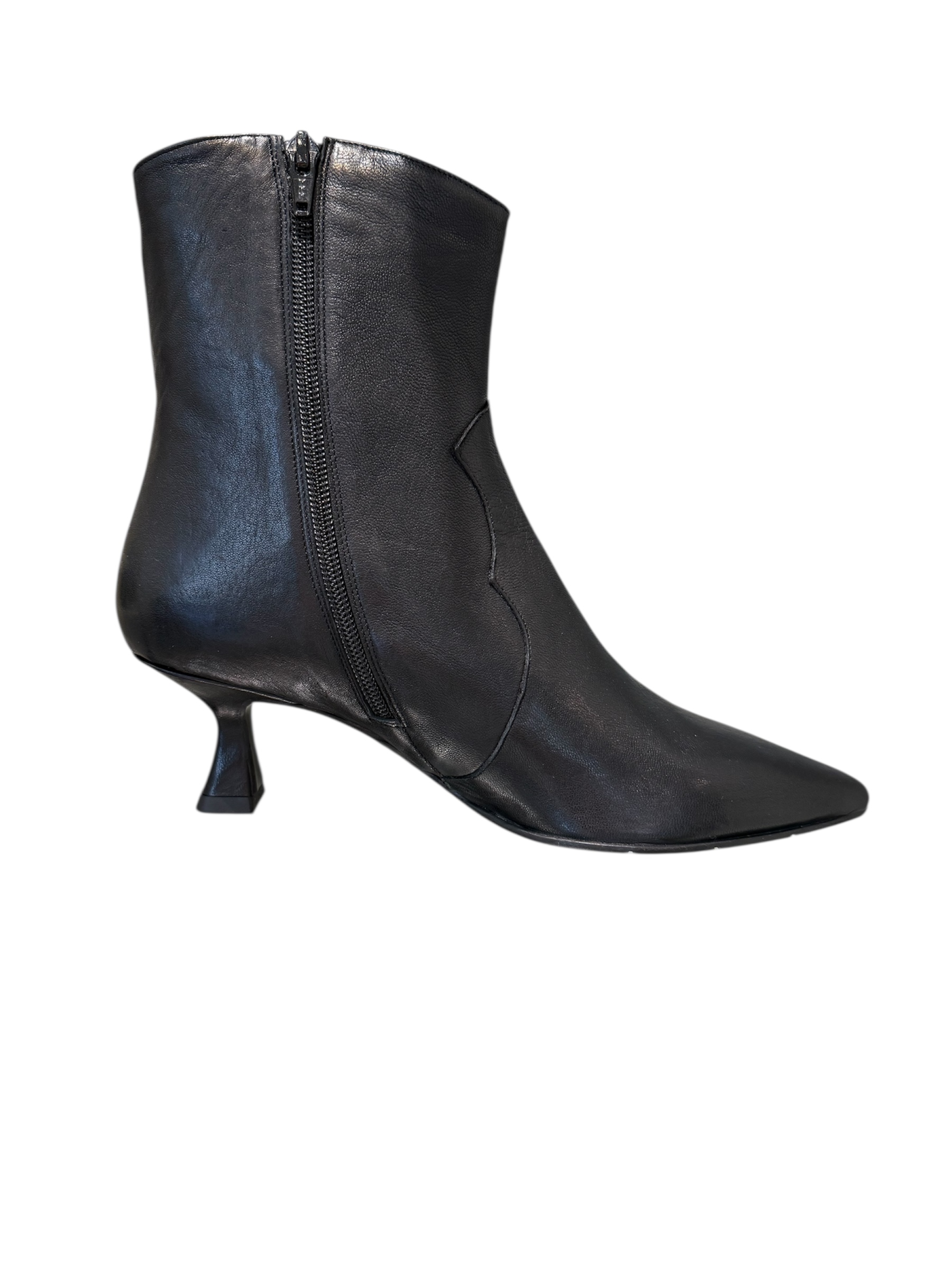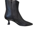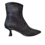 Tronchetto in morbida pelle nera con tacco 5 centimetri e cerniera laterale interna.
