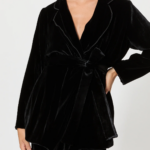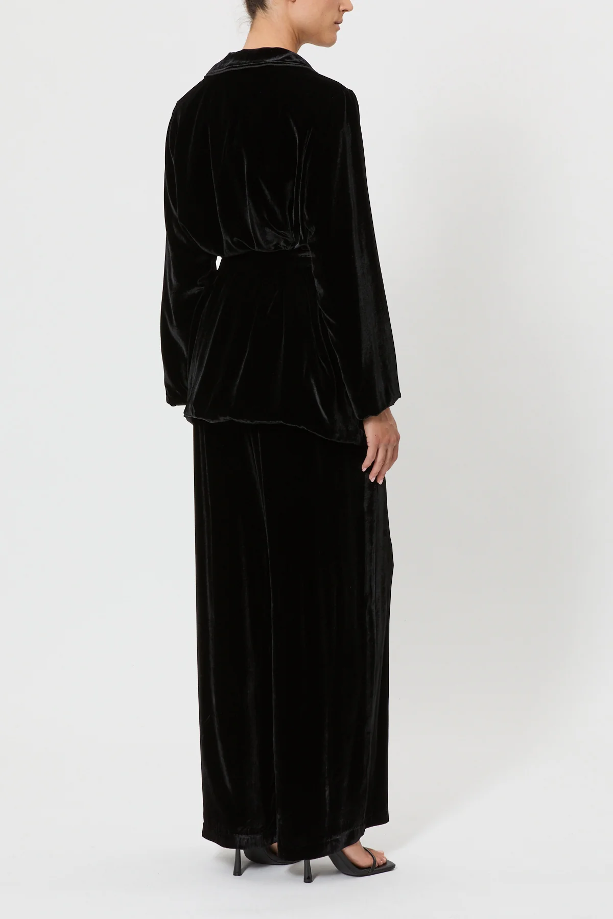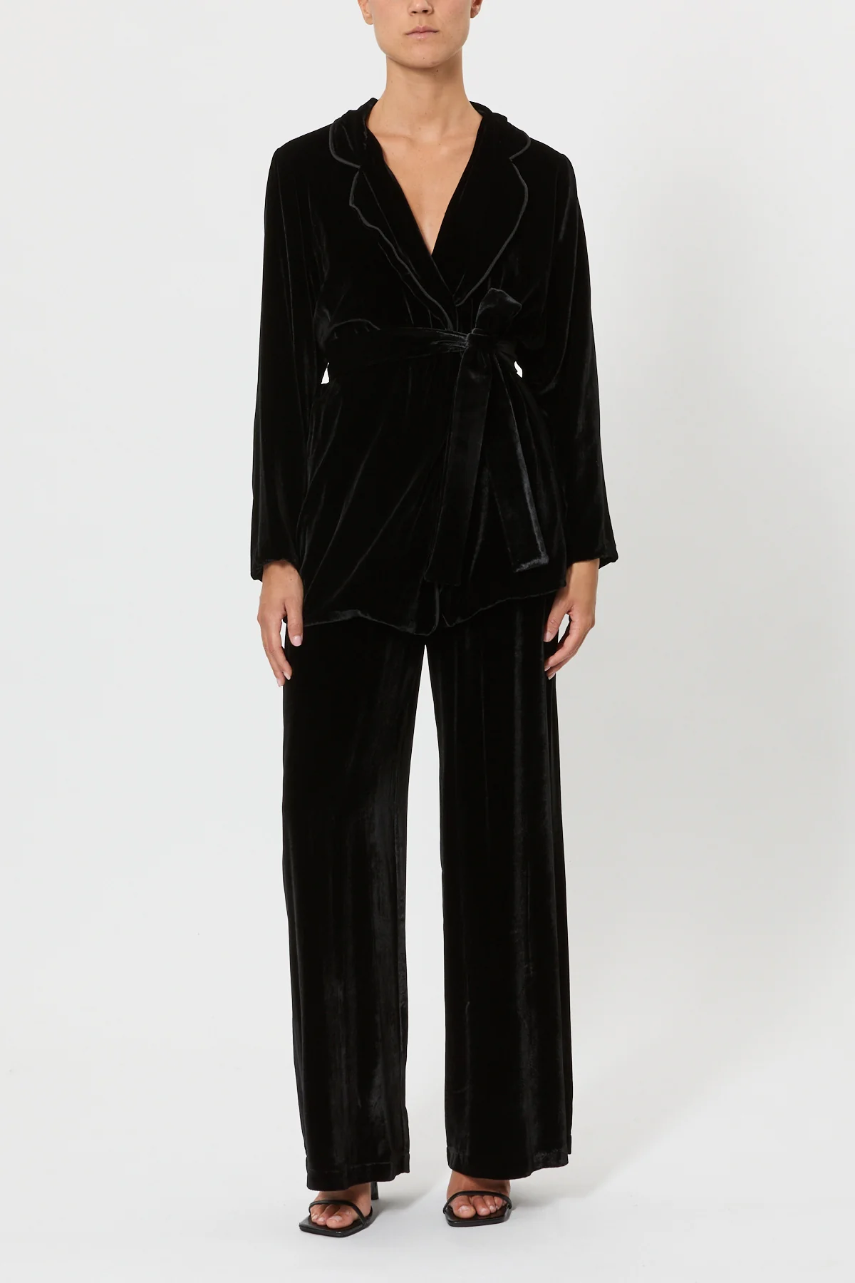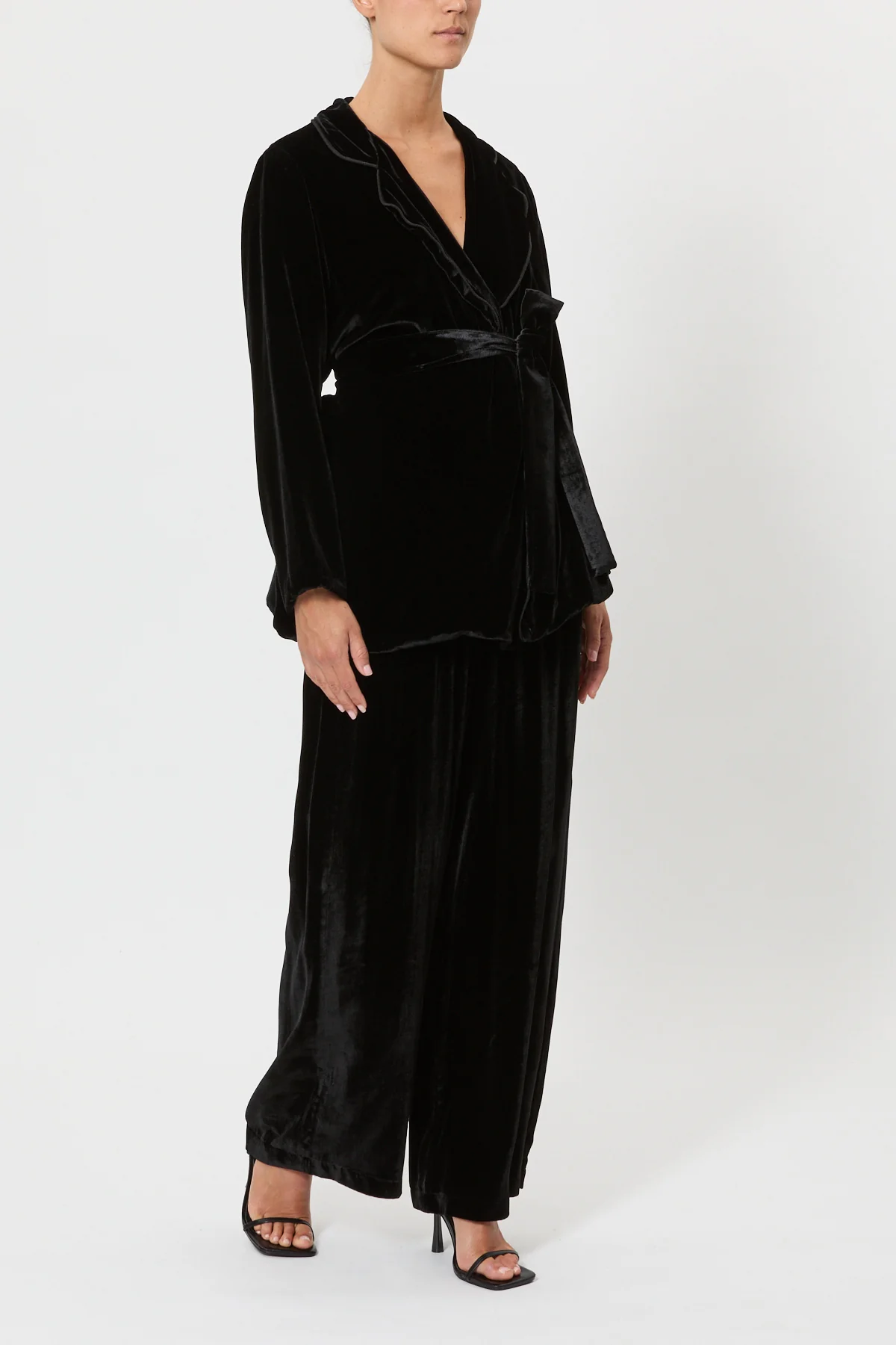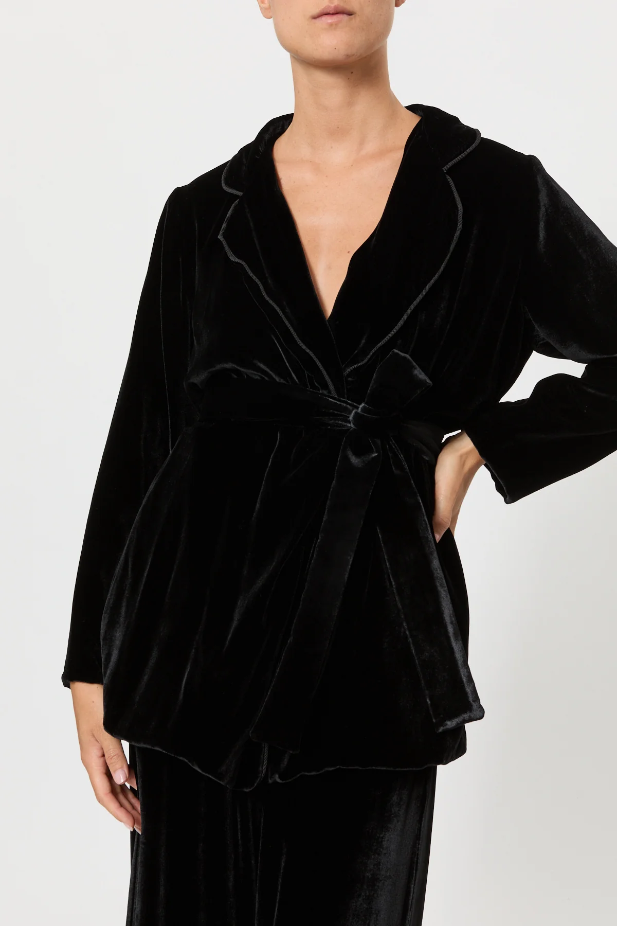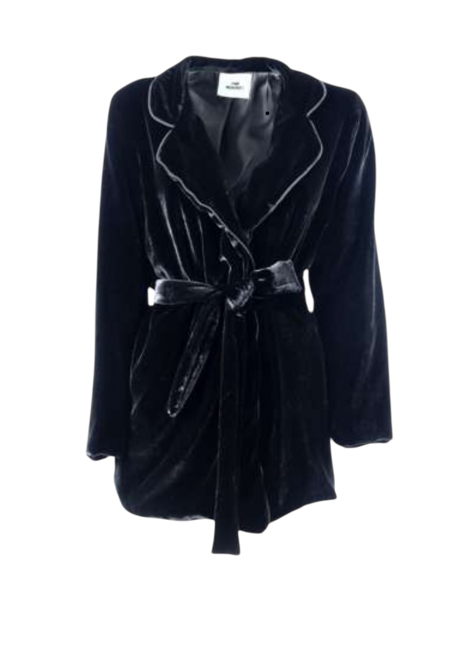 Giacca kimono in velluto nero con cintura . Prodotto artigianale 100% Made in Firenze.