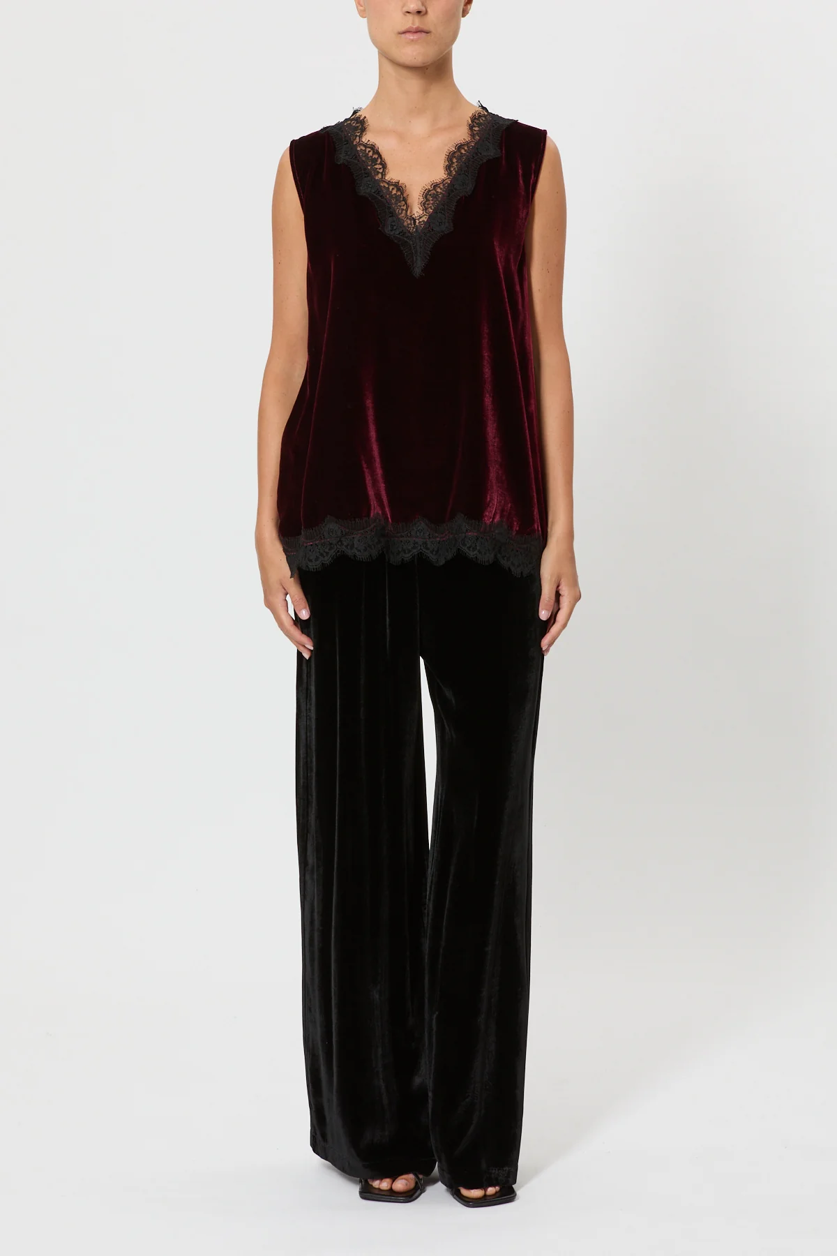 Pantalone in velluto nero con elastico in vita, gamba dritta .100% made in Italy.