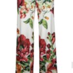 Pantalone palazzo in Lycra stampa floreale su fondo avorio, elastico in vita.